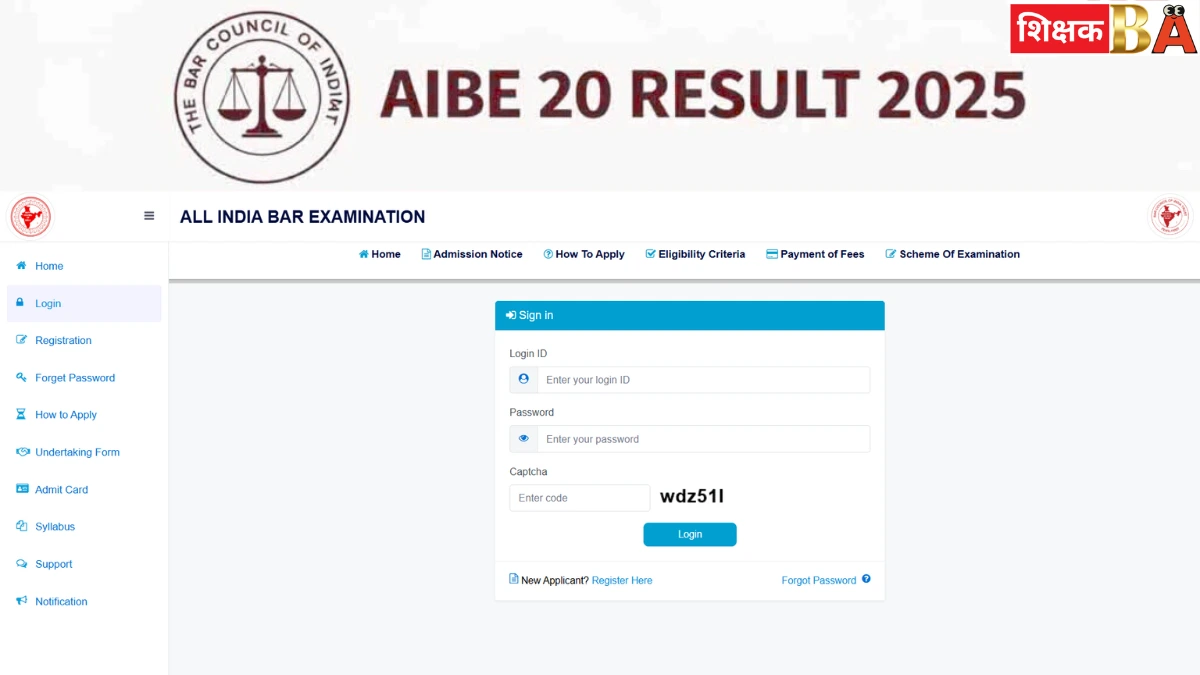होमपेज पर दिखाई देने वाले ‘AIBE 20 Result 2025’ लिंक पर क्लिक करें।