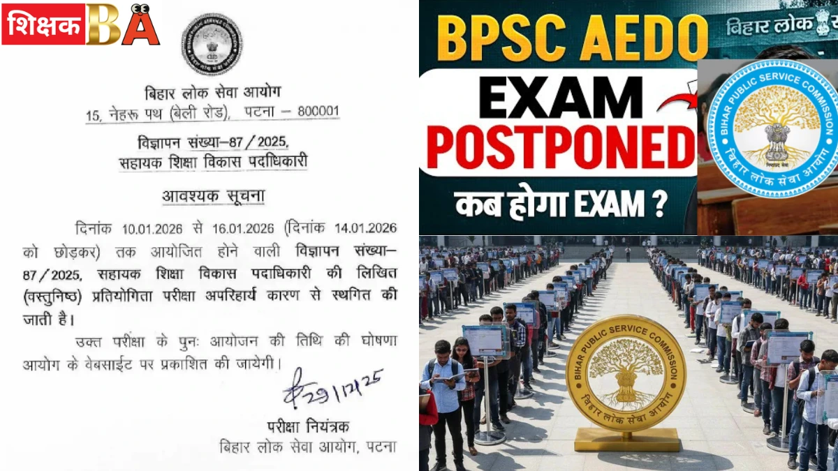 बीपीएससी एईडीओ परीक्षा 2025 स्थगित – BPSC AEDO Postponed | 10 जनवरी 2026 की परीक्षा रोकी गई, जानें पूरी जानकारी