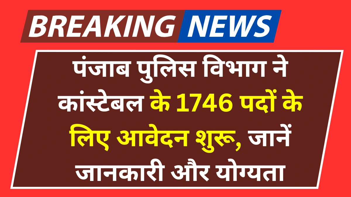 Punjab Police Constable Vacancy 2025: कांस्टेबल के 1746 पदों के लिए आवेदन शुरू, आवेदन प्रक्रिया शुरू, 12वीं पास अभ्यर्थी करें आवेदन