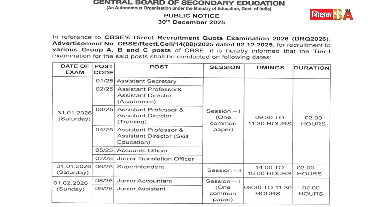 • 12 फरवरी, 2026 (गुरुवार): अंग्रेजी (कोड-02) – परीक्षाओं का प्रारंभ।
