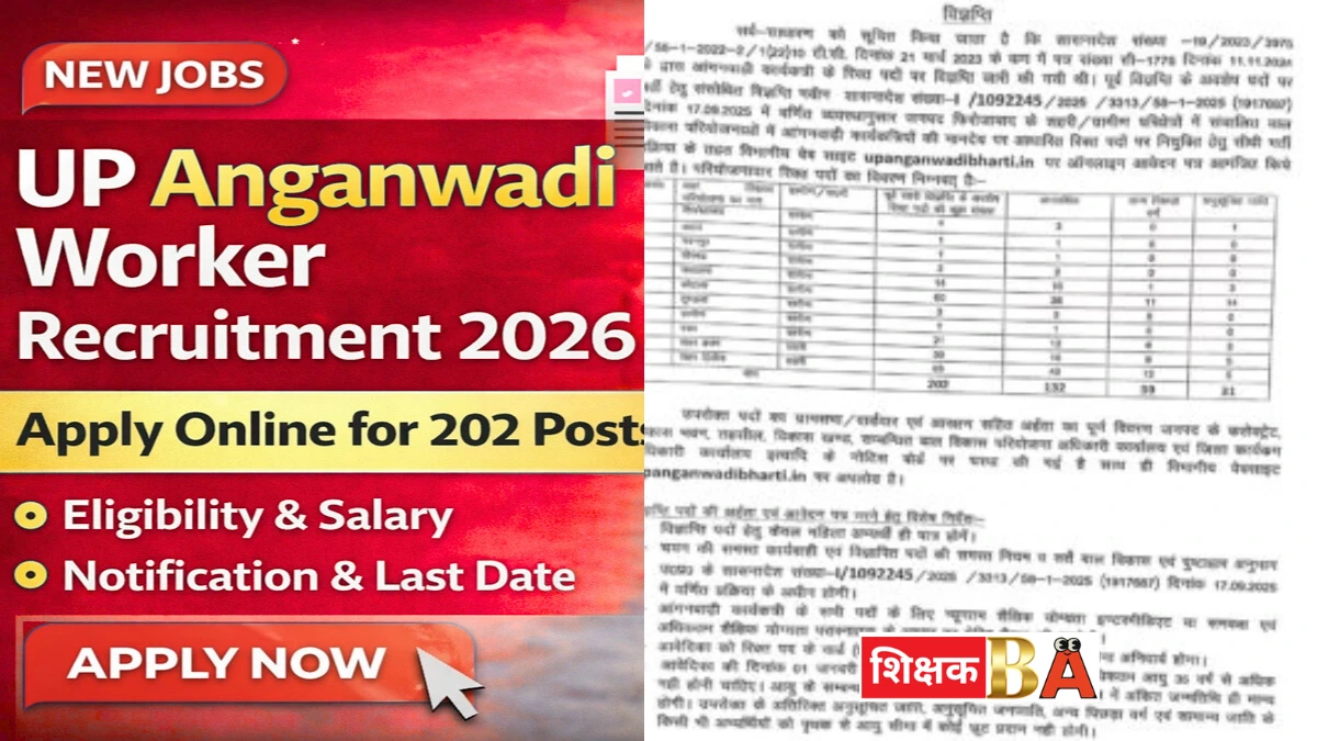यूपी आंगनवाड़ी कार्यकर्ता भर्ती 2026: फिरोजाबाद जिले में 202 पदों पर सीधी भर्ती, महिलाओं के लिए विशेष अवसर | UP Anganwadi Worker Recruitment 2026