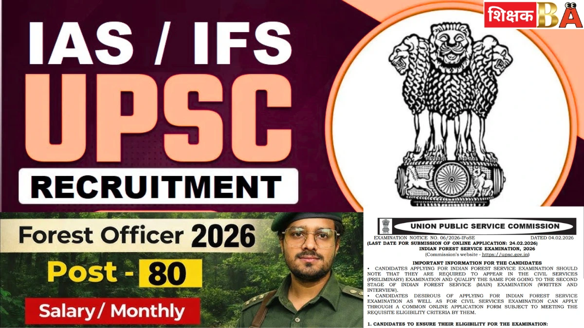 संघ लोक सेवा आयोग (UPSC) ने Indian Forest Service (IFS) Examination 2026 के लिए ऑफिशियल नोटिफिकेशन जारी कर दिया है। यह भर्ती उन उम्मीदवारों के लिए सुनहरा मौका है जो राज्य तथा केंद्र सरकार के वन प्रशासनिक अधिकारी (IFS Officer) बनना चाहते हैं। इस भर्ती में कुल 80 पदों के लिए आवेदन ऑनलाइन स्वीकार किए जाएंगे। आवेदन प्रक्रिया पहले ही शुरू हो चुकी है और इच्छुक उम्मीदवार ऑनलाइन आवेदन 04 फरवरी 2026 से 24 फरवरी 2026 तक कर सकते हैं।